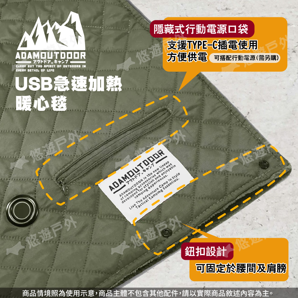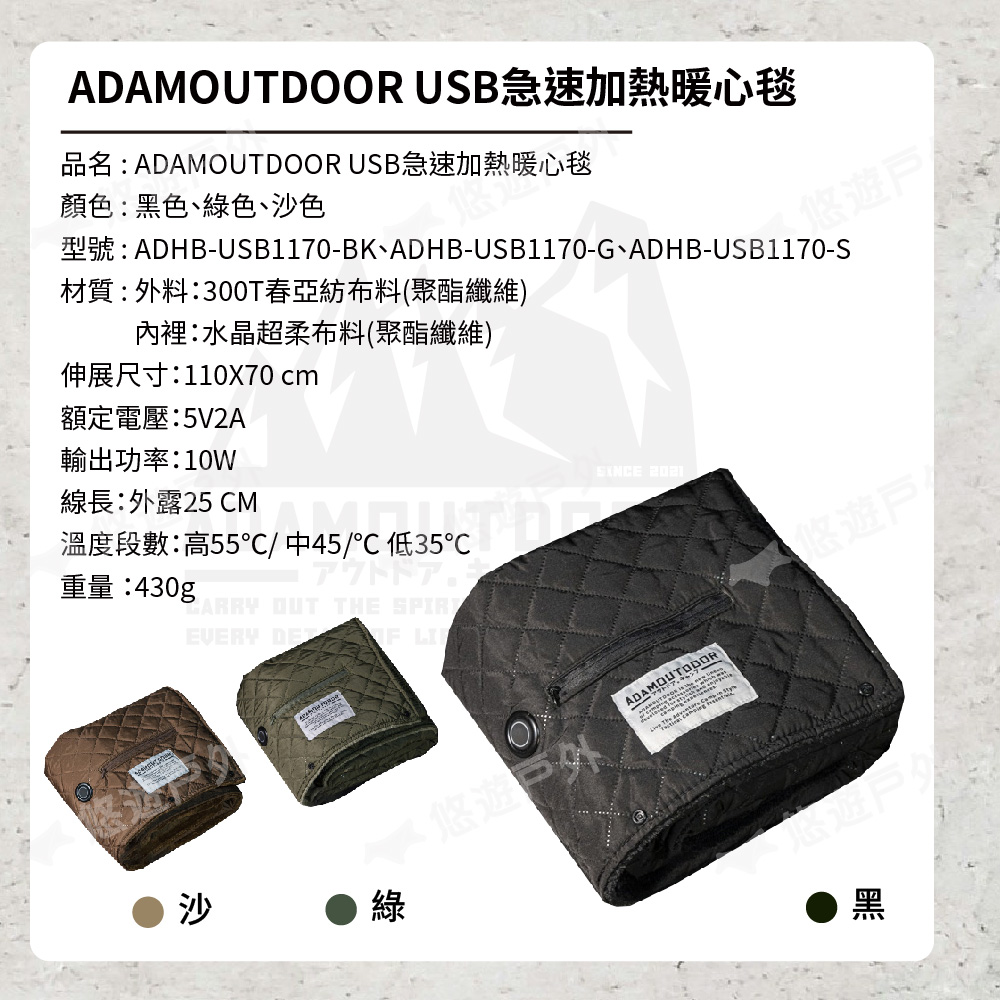 【ADAMOUTDOOR】USB急速加熱暖心毯 ( ADHB-USB1170 ) 三色任選