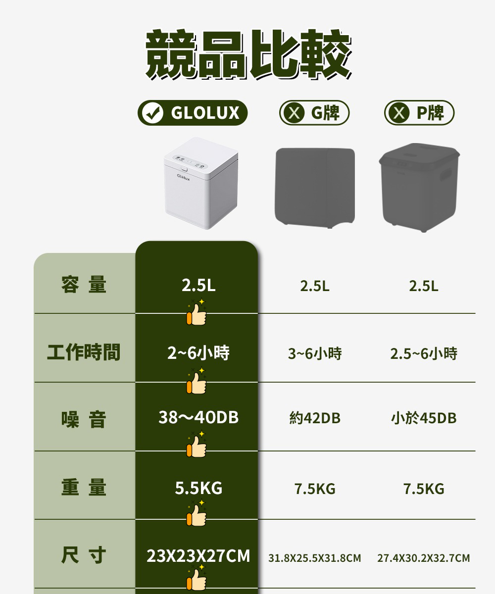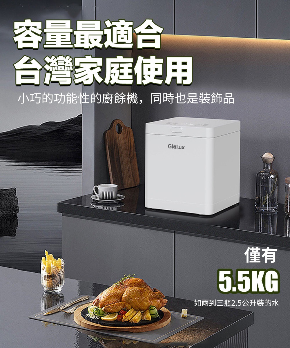 【Glolux】2.5L節能微型廚餘機(FR-2501) 洽官方LINE索取50折扣碼