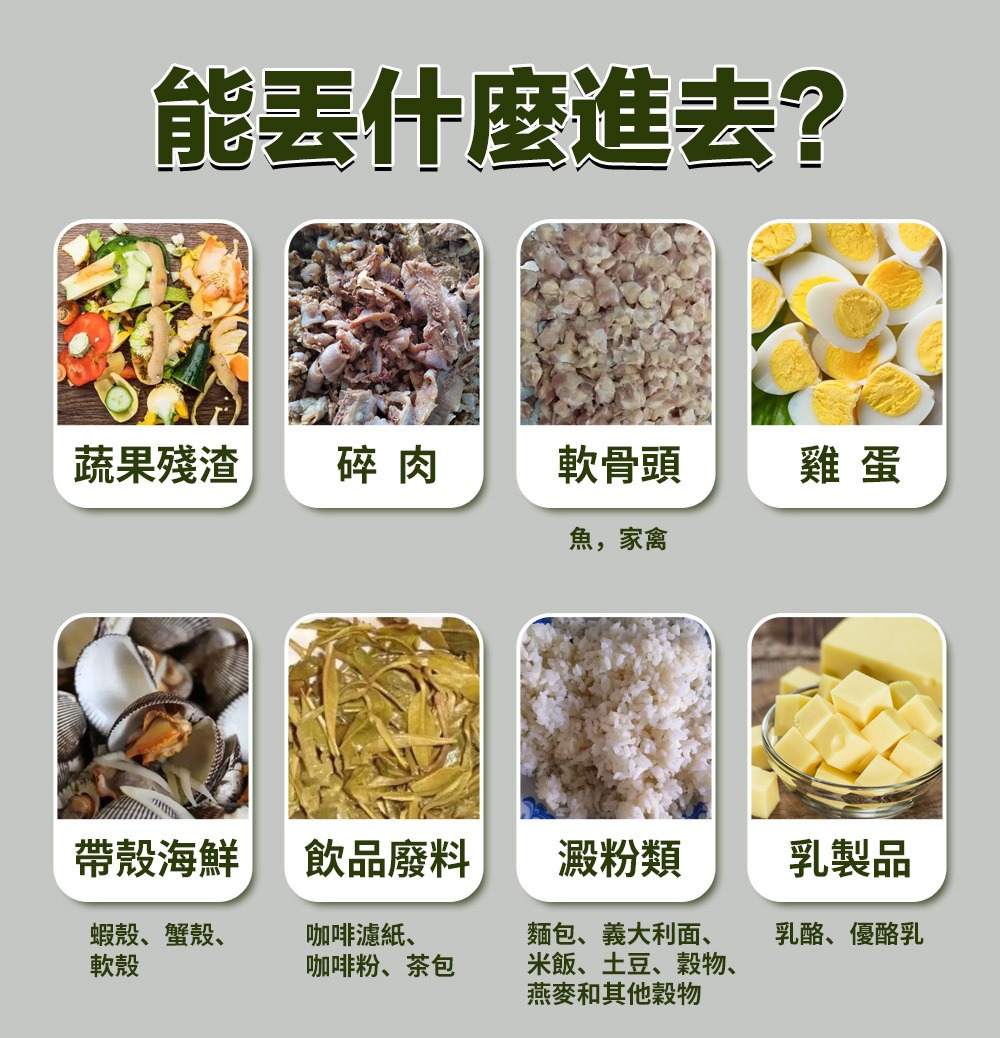 奈米陶瓷塗層容易清理除臭研磨烘乾,濕垃圾變有機肥料三層三葉攪拌刀高溫烘乾研磨除臭環保活性碳盒高溫滅菌烘乾 納米塗層好清洗廚餘減量85~95%降躁設計 小於38DB體型輕巧 不佔空間
