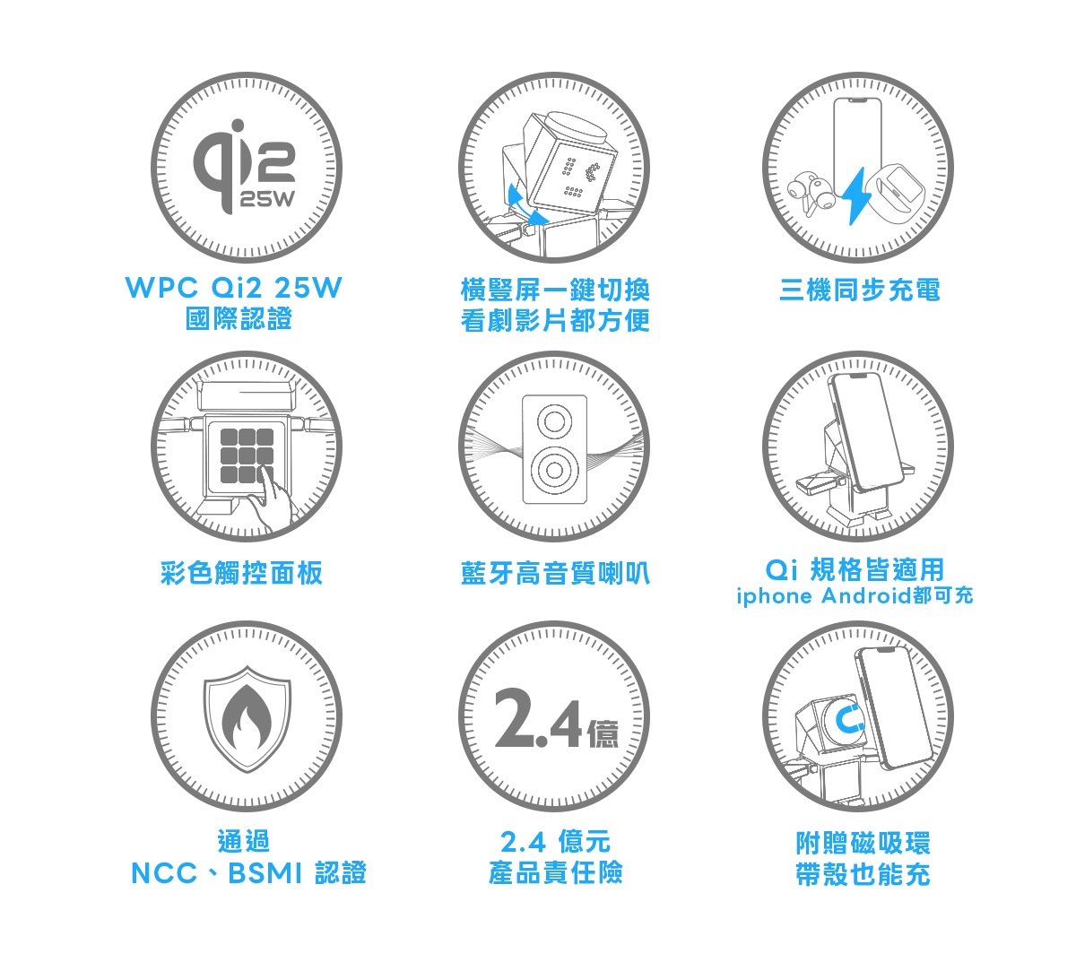Qi2.2、NCC、BSMI,內建過溫過壓檢測,安心無虞