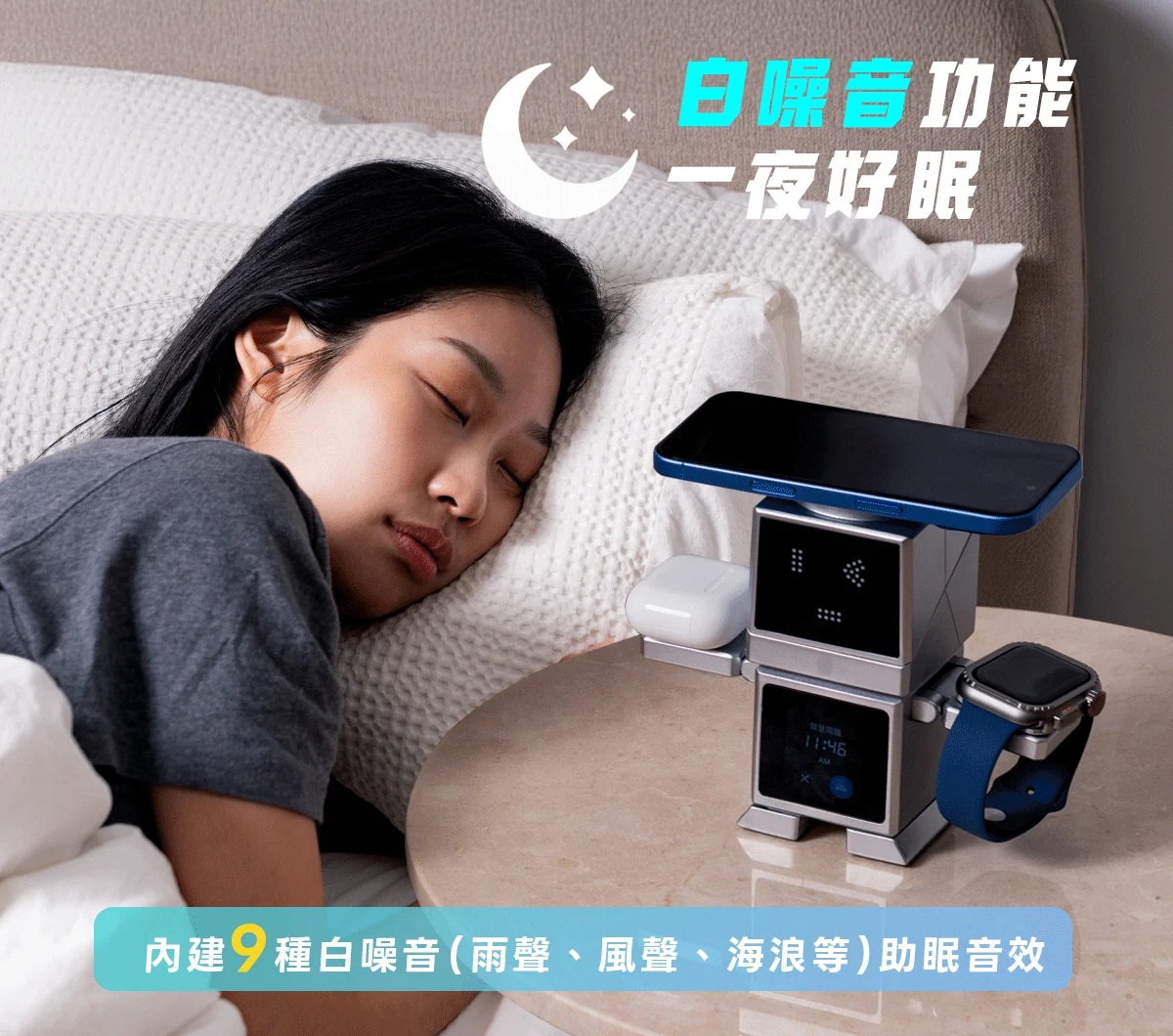 內建 9 種白噪音,白天解壓、夜晚好眠