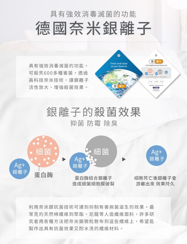 填充:15%天然蠶絲+85%超細纖維+奈米銀離子