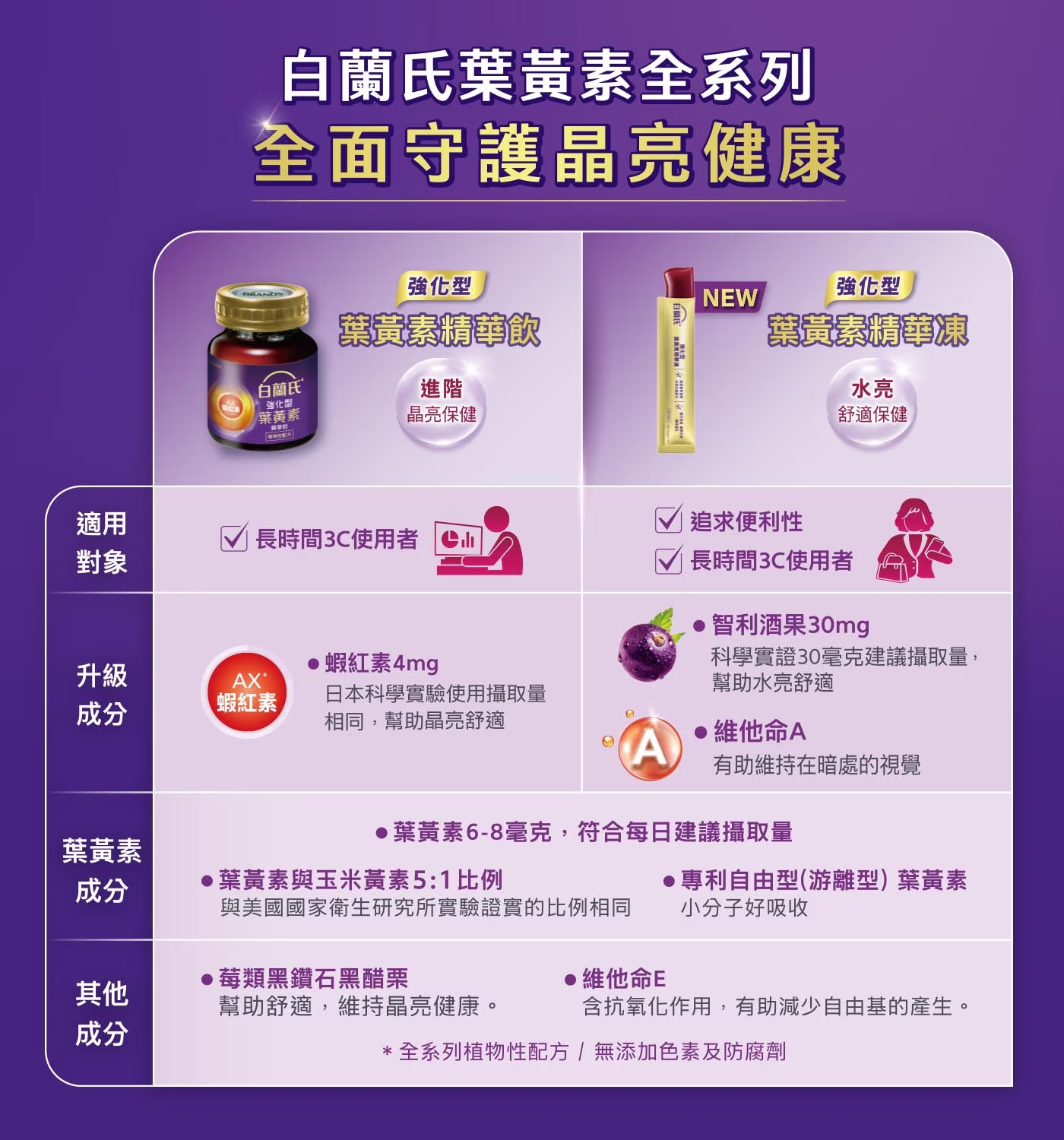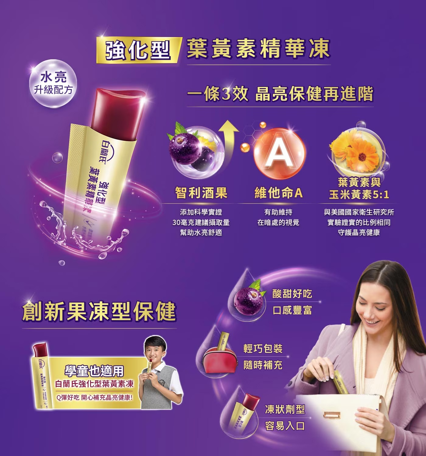 品名:白蘭氏 強化型葉黃素晶亮組 葉黃素飲 60毫升 X 22入 + 葉黃素凍 15公克 X 7入