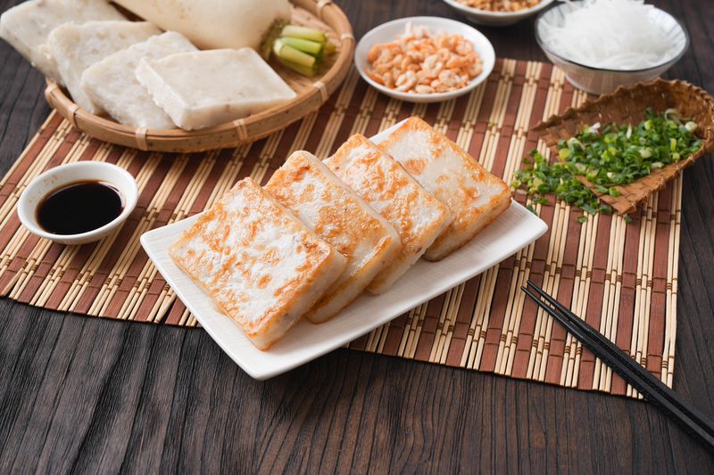 3.蘿蔔糕底部邊緣變色就可以翻面