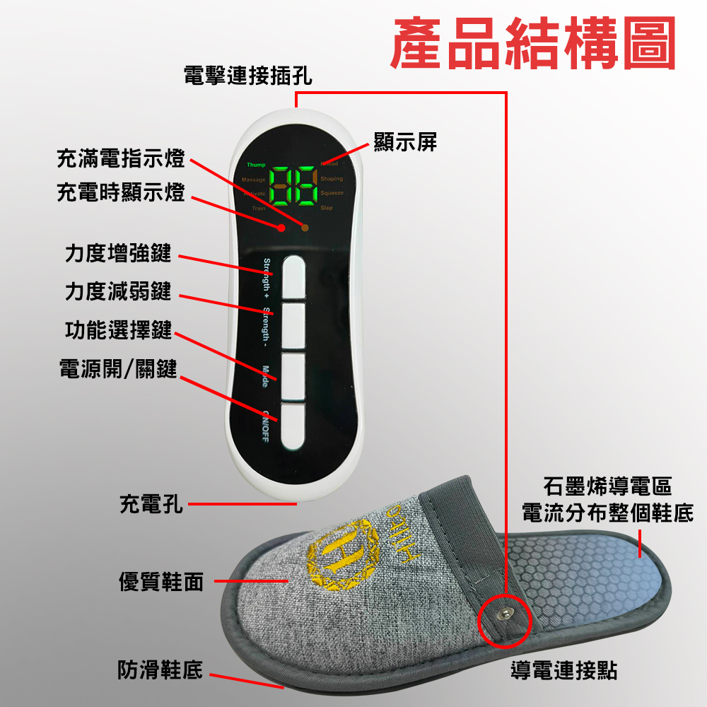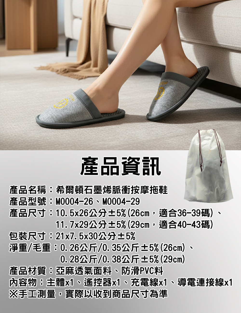 產品名稱:【Hilton 希爾頓】石墨烯脈衝按摩拖鞋