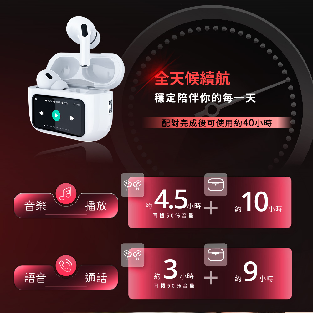 ‧語音通話時間:含充電盒約可長達9小時
