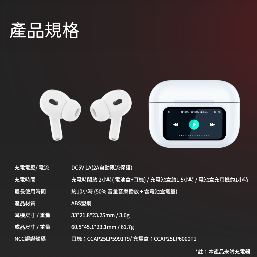 ‧音樂播放時間:含充電盒約可長達10小時