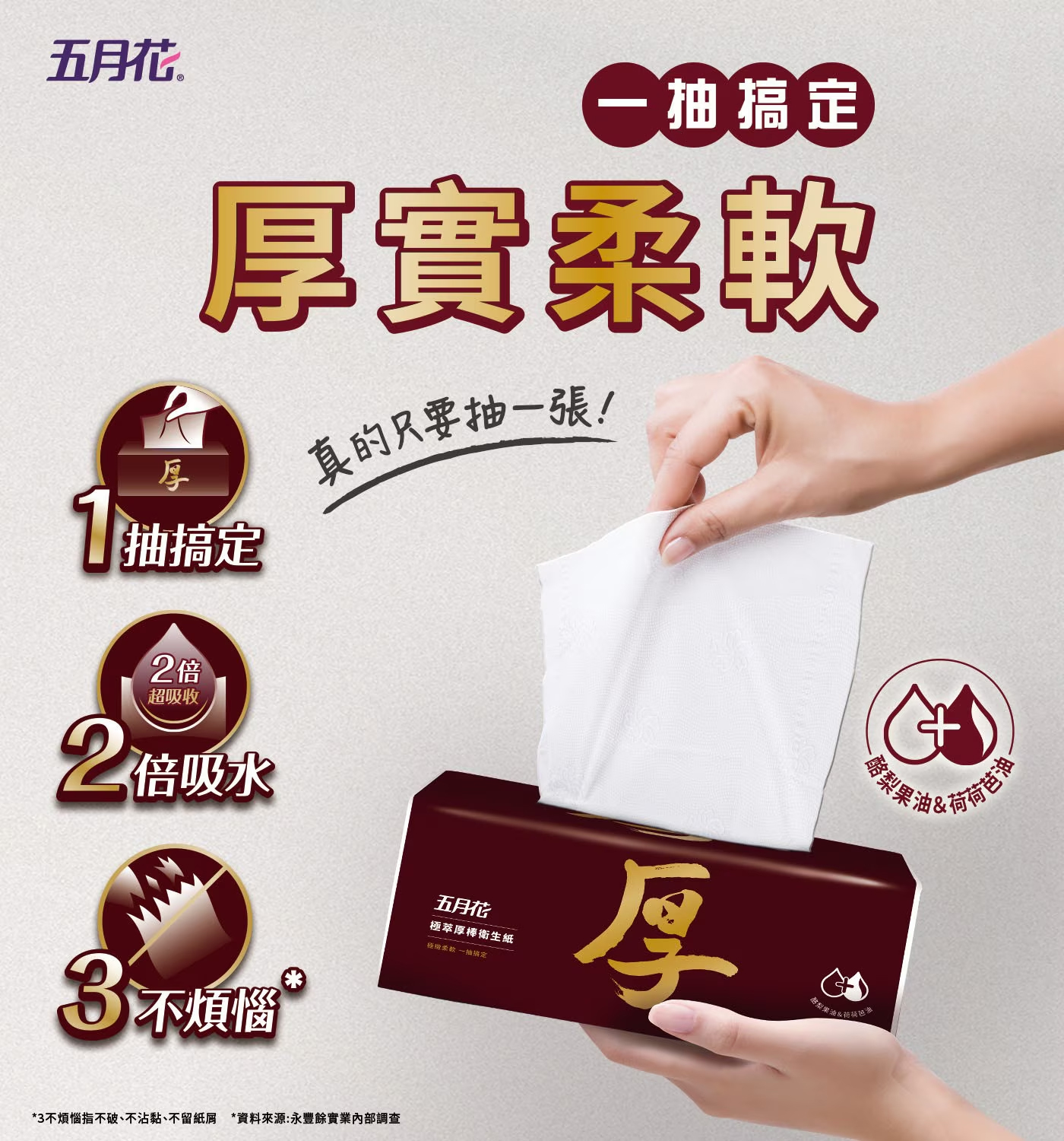 品名:五月花 極萃厚棒抽取式衛生紙 100抽 X 60入