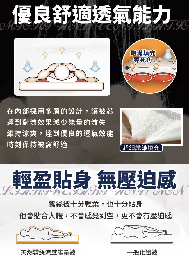 ◆天然蠶絲抑菌好安心,可真正降溫的能量涼被