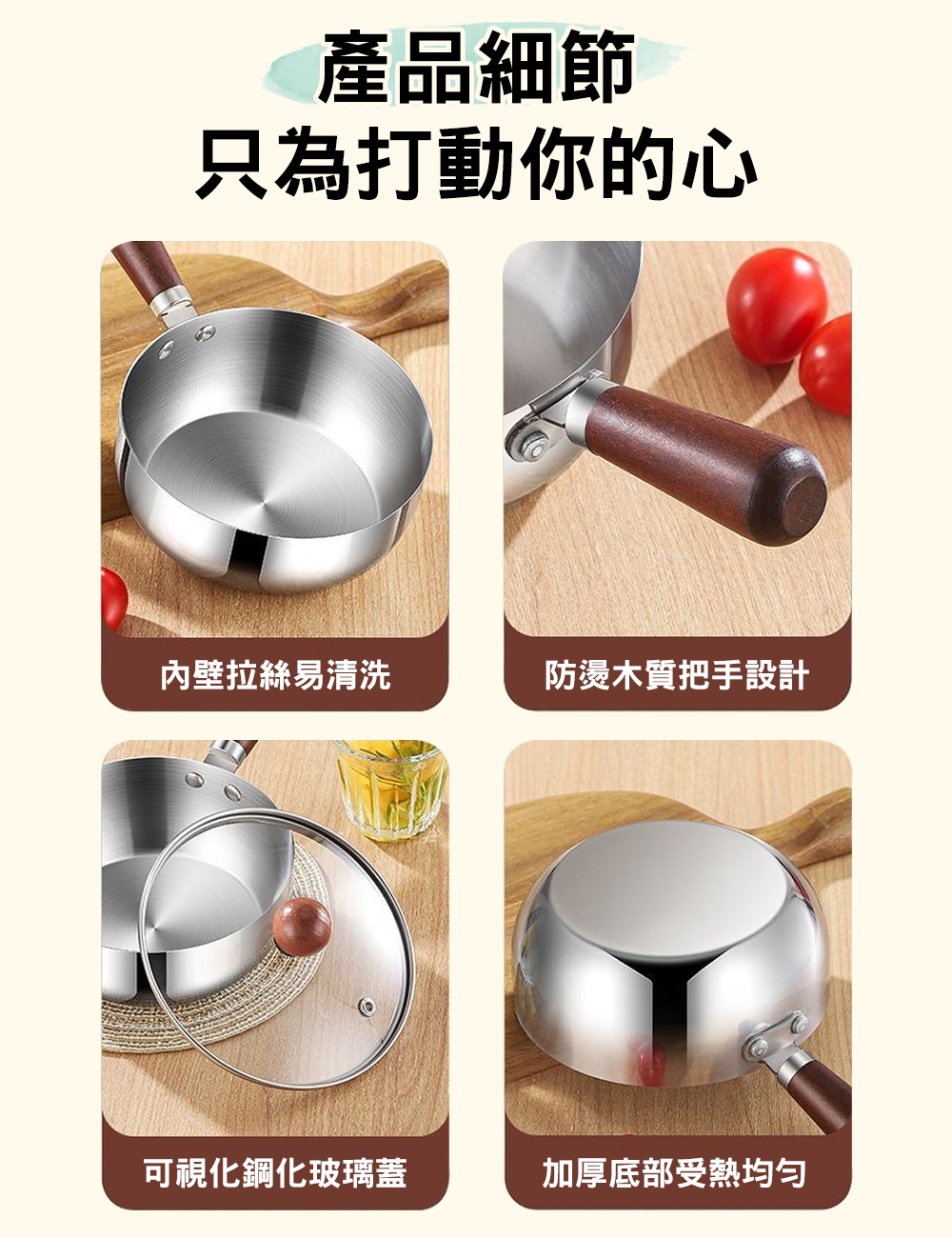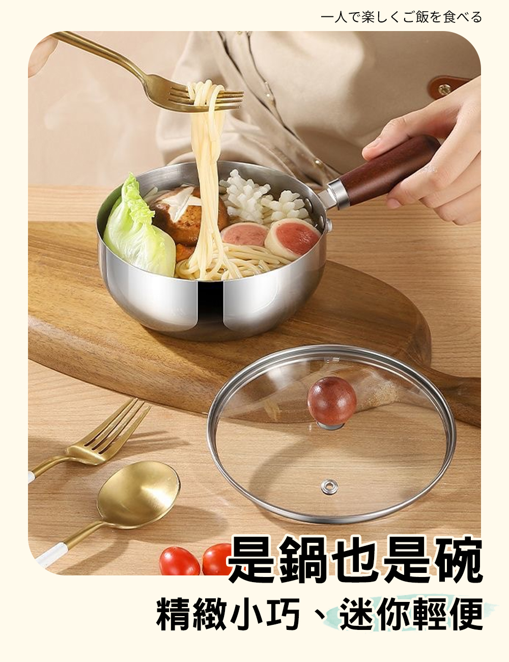 產品名稱:日式桃木316不鏽鋼泡麵鍋【帶蓋】17cm