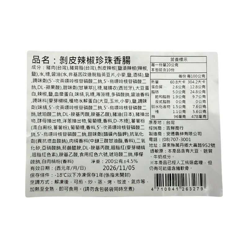 A.剝皮辣椒珍珠香腸
