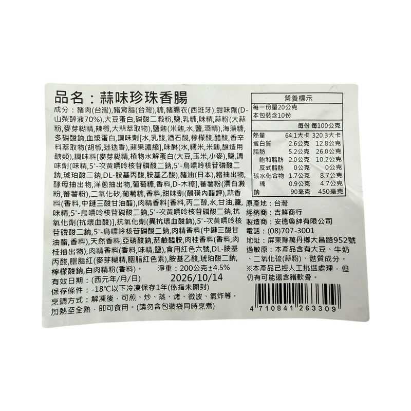 C.蒜味珍珠香腸