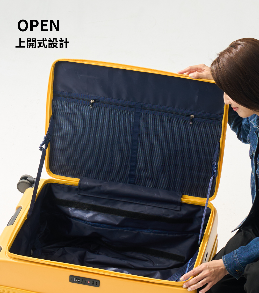 ●配件:靜音飛機輪、TSA海關密碼鎖、上開蓋設計、防爆可加大拉鍊