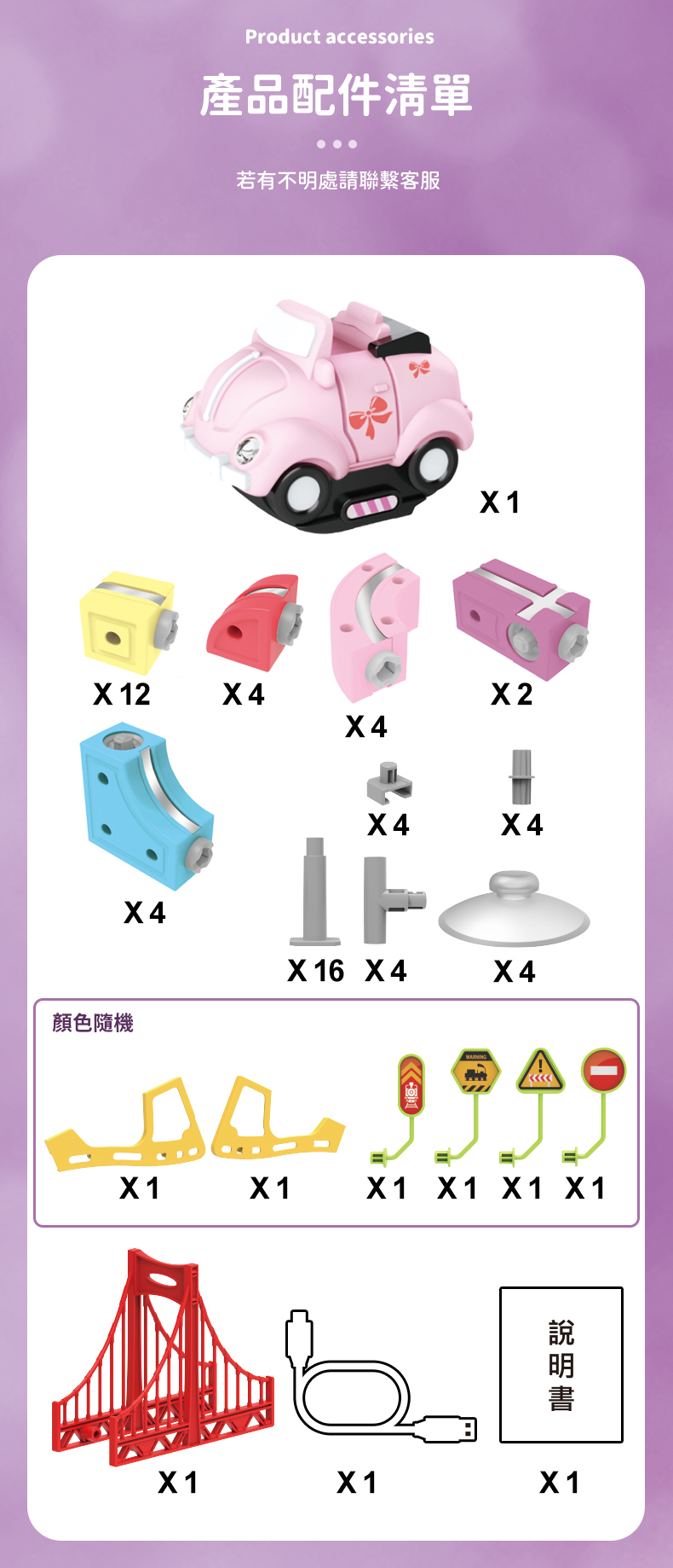 【花太太】立體磁力軌道小火車66pcs(粉紅超跑)