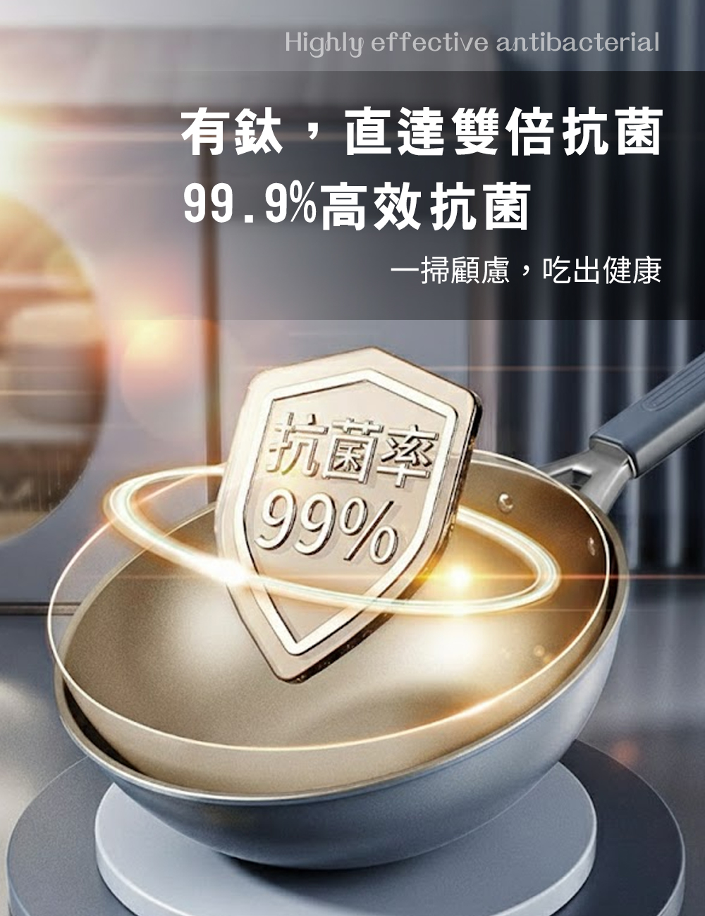 產品名稱:有鈦不沾炒鍋32cm+蓋(附硅膠鏟+菜瓜布)